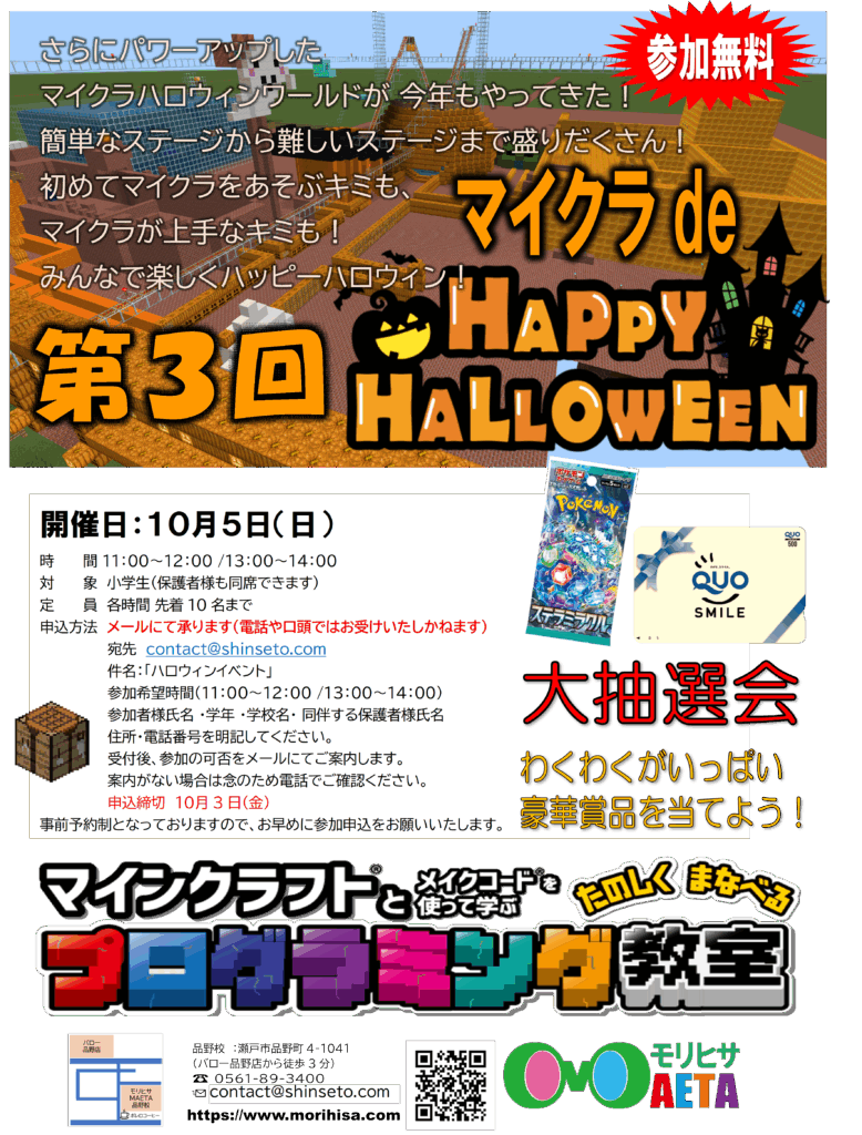 プログラミング教室ハロウィンパーティー開催のお知らせ